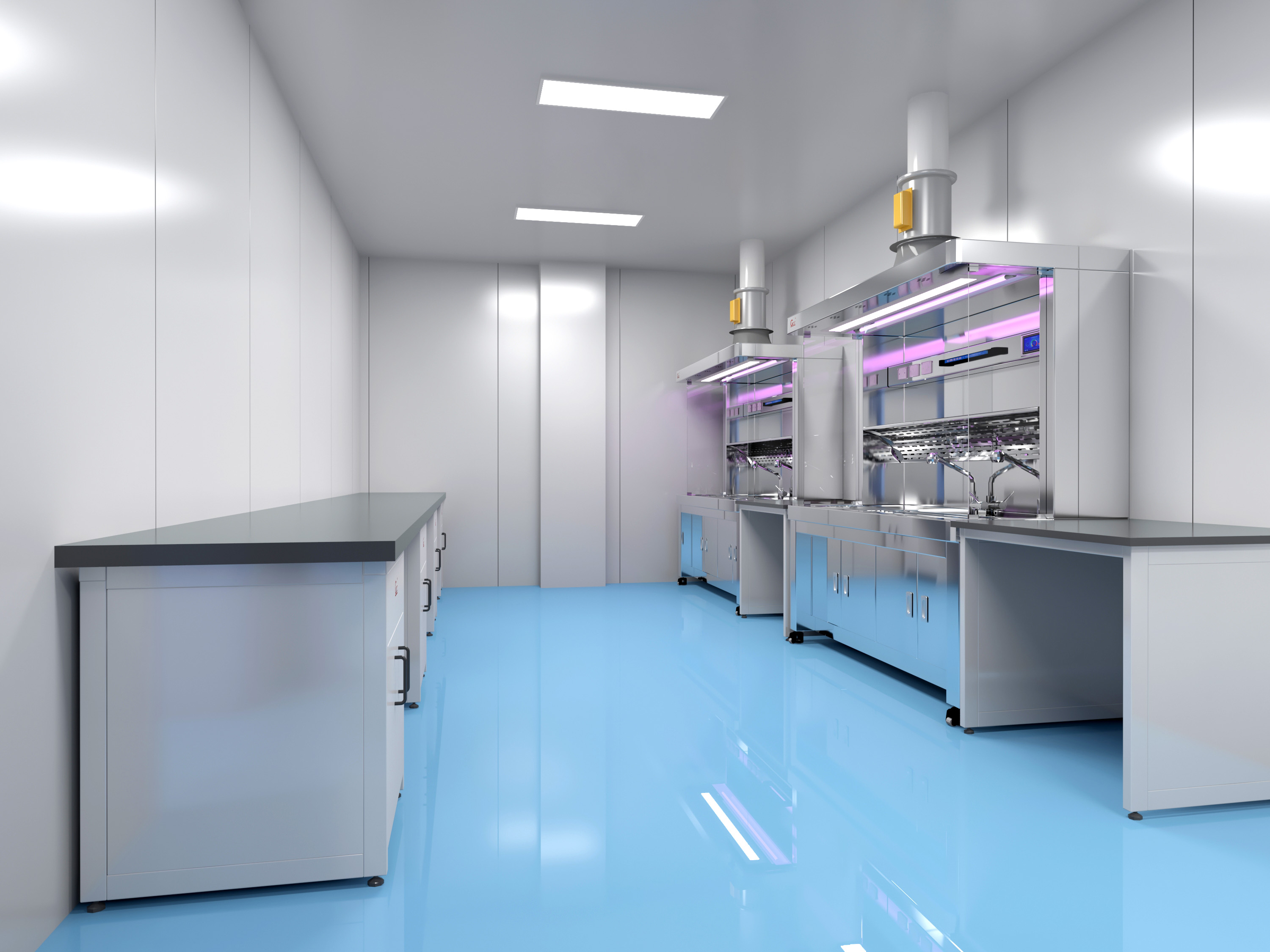 3.通风系统: 核心是风机、风阀和管道系统。要求风速稳定(通常面风速控制在0.3-0.5m/s)、噪音低、能耗小,且过滤效率需符合相关安全标准。