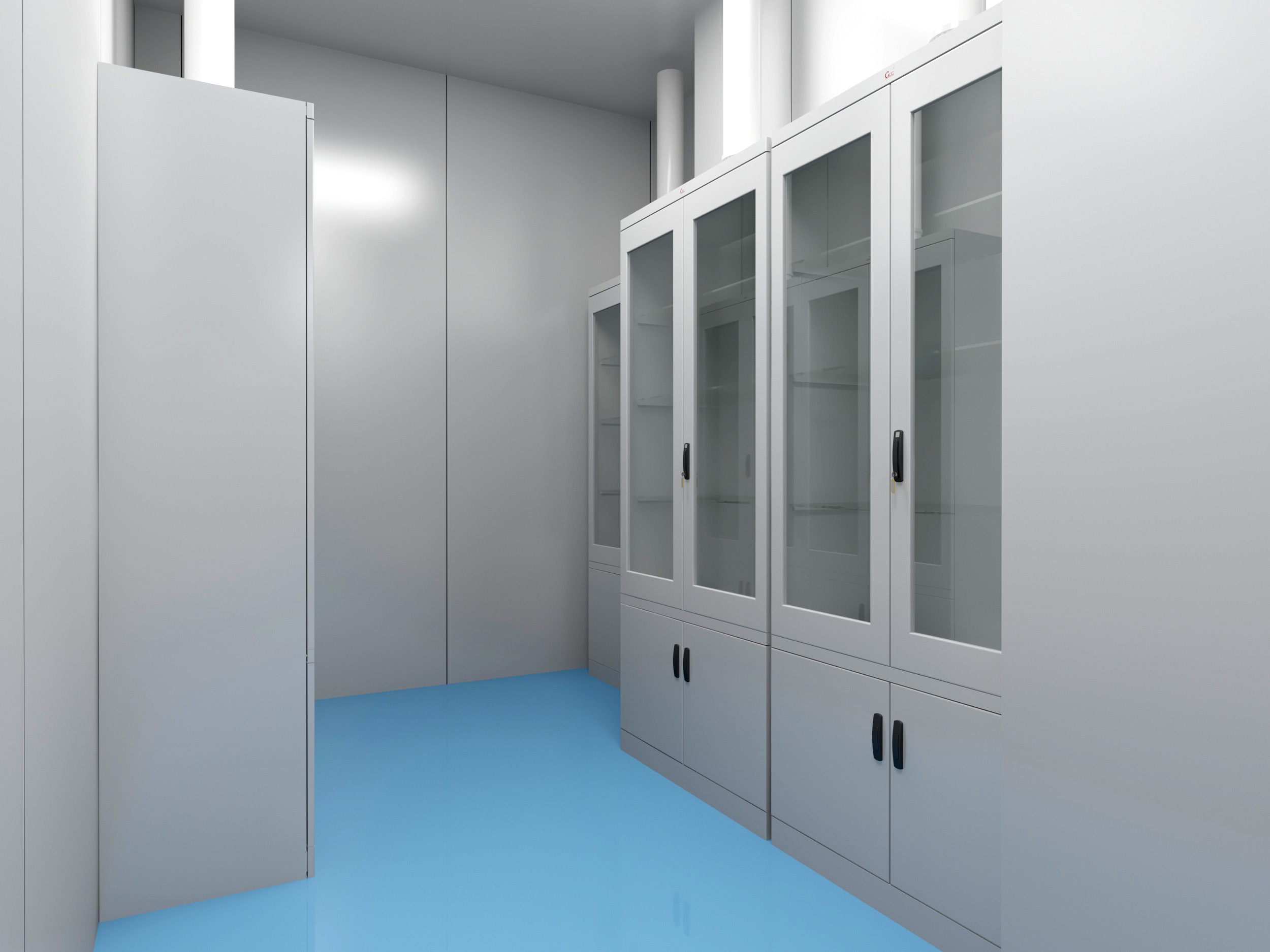 b. 气流组织:采用上送下排方式。送风口位于天花板靠近入口上方,排风口必须直接集成于取材台操作面上方,形成局部负压罩。